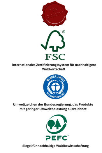 Der Blaue Engel ist in Deutschland ein Umweltzeichen, das auch für nachhaltige Holzprodukte vergeben wird. Es kennzeichnet Produkte, die strenge Umwelt- und Gesundheitsstandards erfüllen. Der Blaue Engel ist übrigens das älteste Umweltzeichen der Welt und wurde bereits 1978 eingeführt.